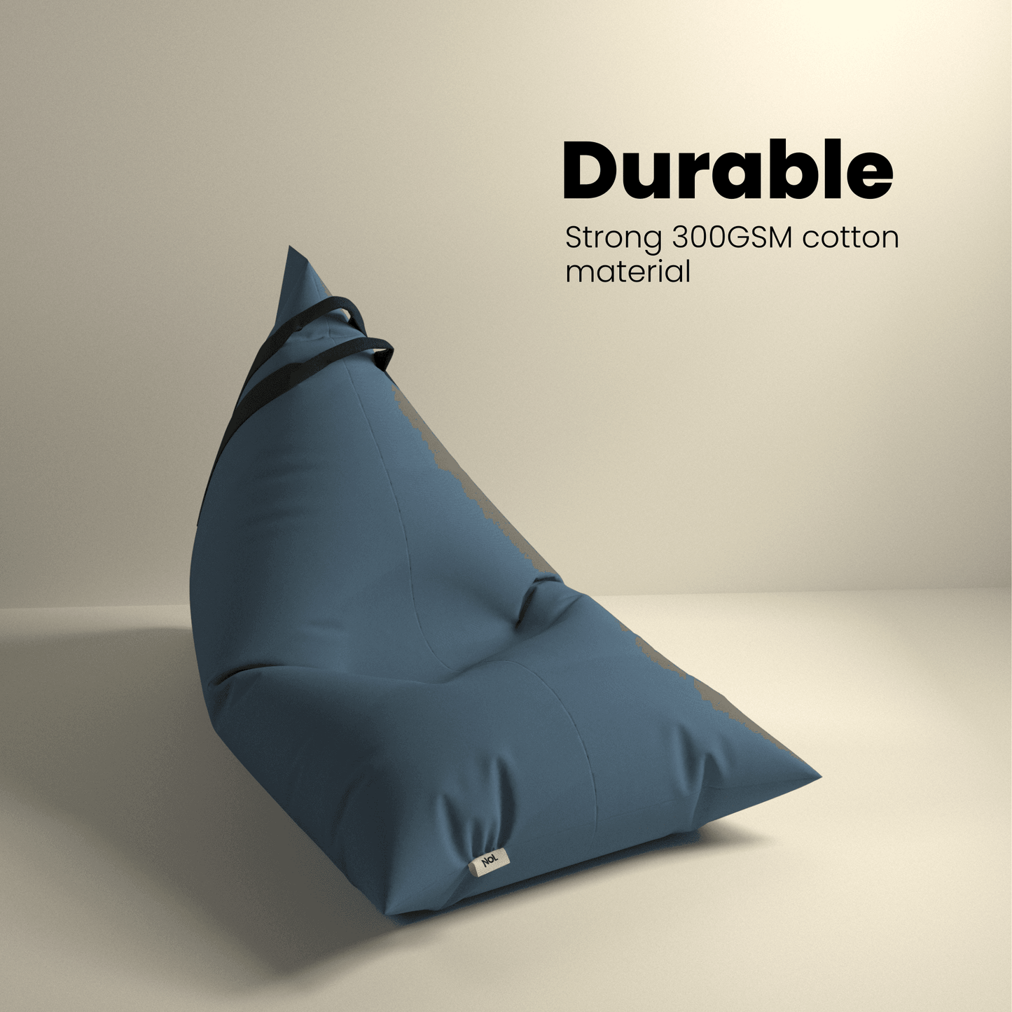 Fabricado con tela de algodón suave y duradera de 300 g/m² , este puf piramidal ofrece un excelente soporte para la espalda. Su llamativo color azul ilumina cualquier habitación, mientras que sus dos asas negras facilitan su transporte.