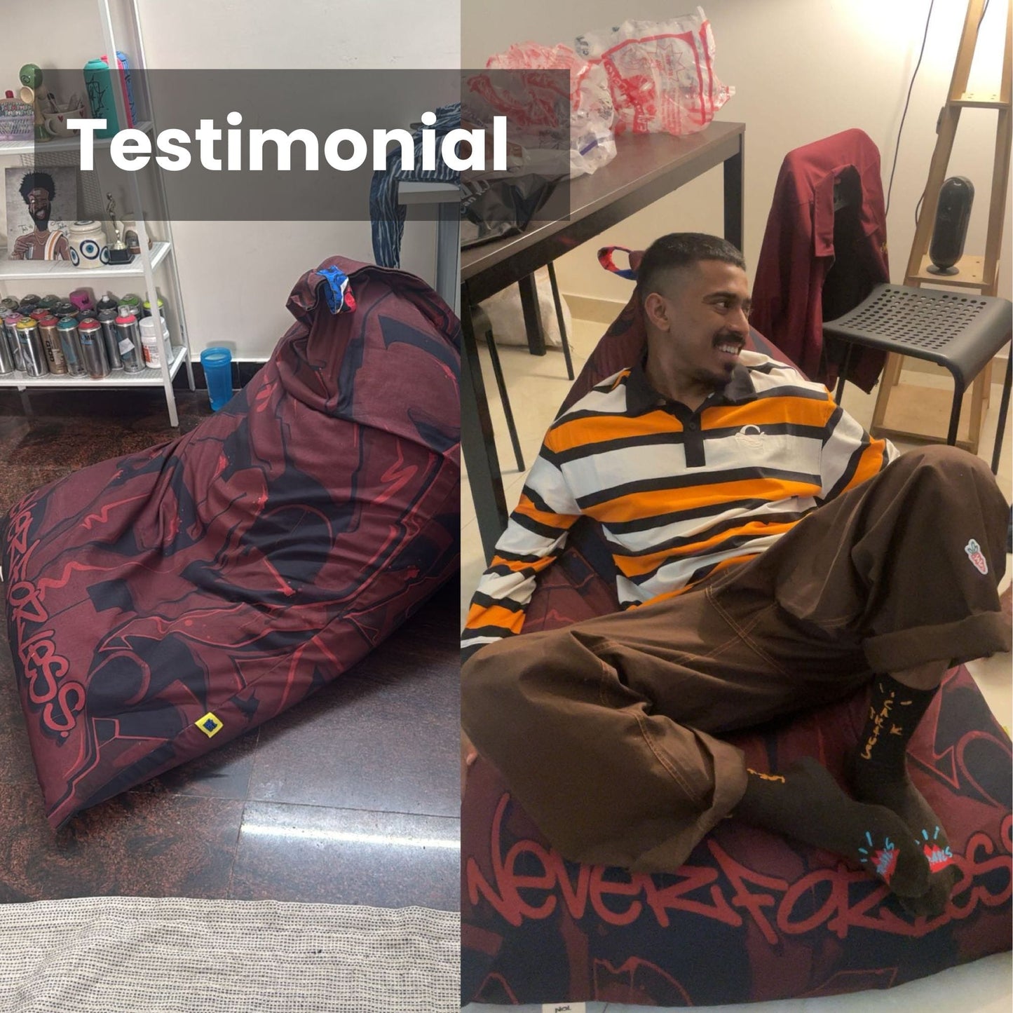 Disfruta de la relajación definitiva con nuestros pufs con un toque de grafiti, una colaboración con LEFT (zurdo) y NOL. Este puf gaming de lona, ​​una pieza destacada de nuestro estudio, luce la llamativa letra "Deja tu huella". Más que una simple bolsa de basura, es un diseño duradero de lona impresa, de nuestra tienda de pufs, diseñado para la relajación. Su práctica asa negra facilita su transporte, mientras que el cierre de cremallera facilita el llenado y la limpieza. Descubre la combinación perfecta de arte y comodidad con estos exclusivos pufs.