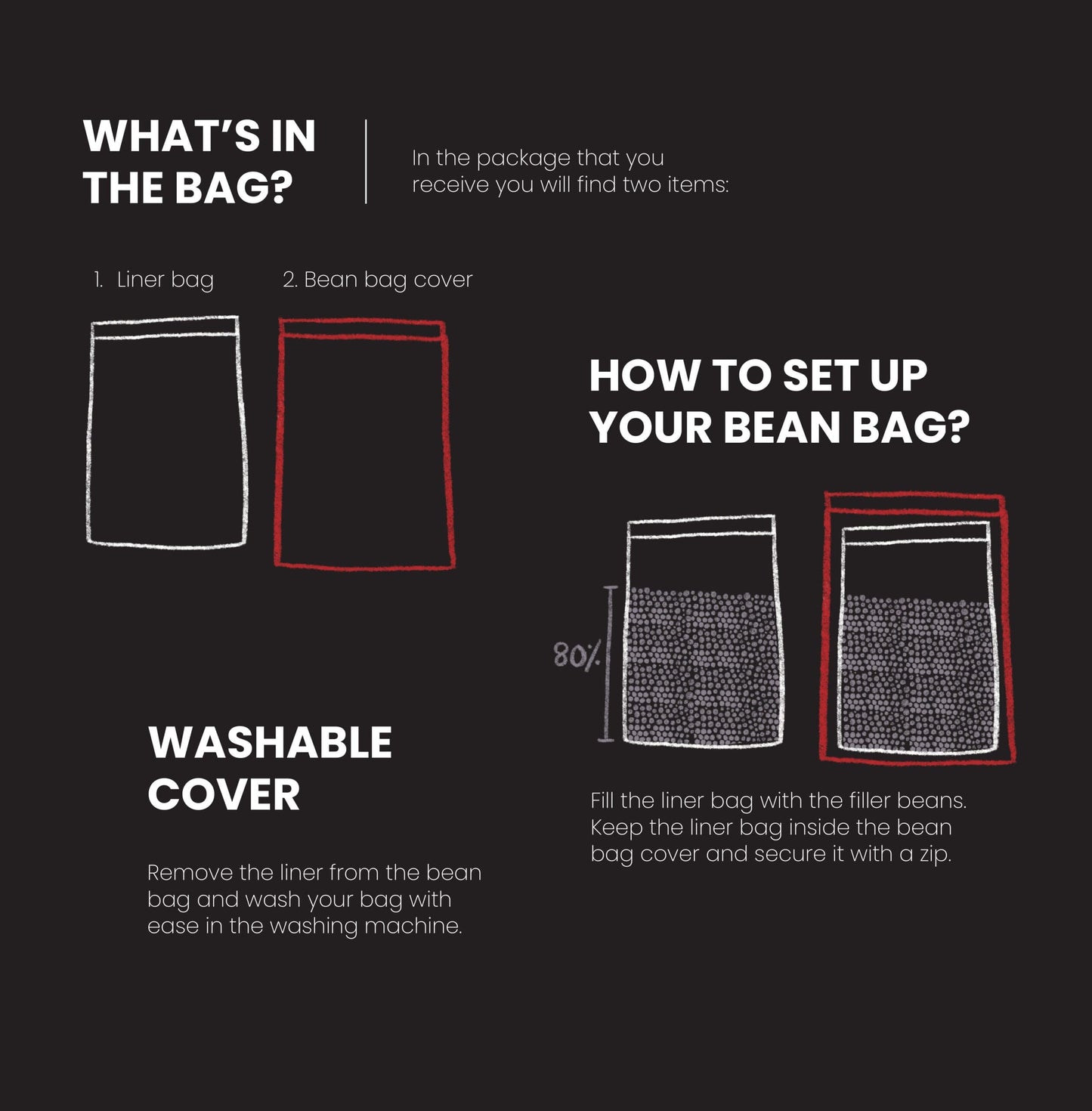 Todos nuestros pufs incluyen la opción de comprar un forro. Rellena este forro con relleno de poliestireno y luego introdúcelo en tu puf NOL para mantener su forma y comodidad.
