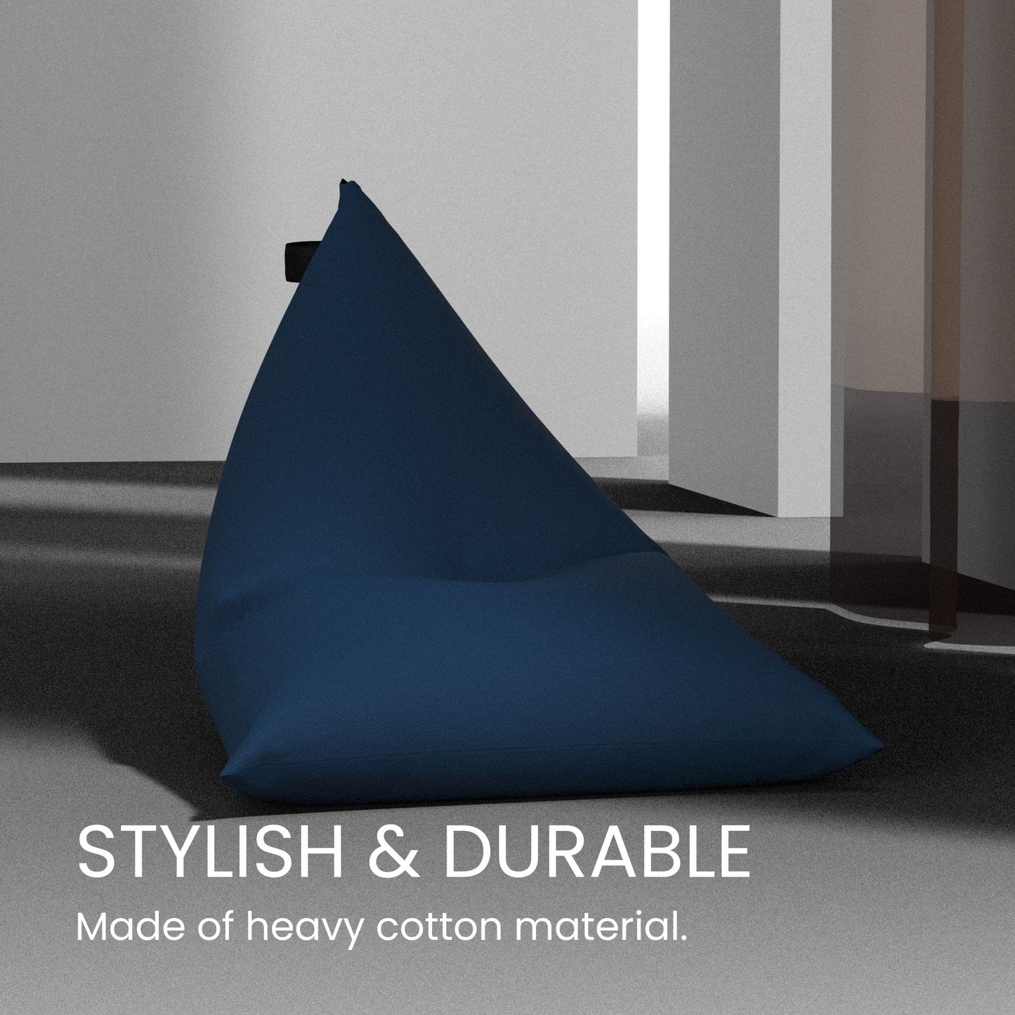 Experience superior comfort with this sleek pyramid bean bag. You can easily find this bean bag online, and for added protection, consider a bean bag cover. Made from premium 300gsm soft cotton fabric, this bean bag's ergonomic design provides excellent back support. The elegant blue color and solid pattern bring a sophisticated touch to any room.