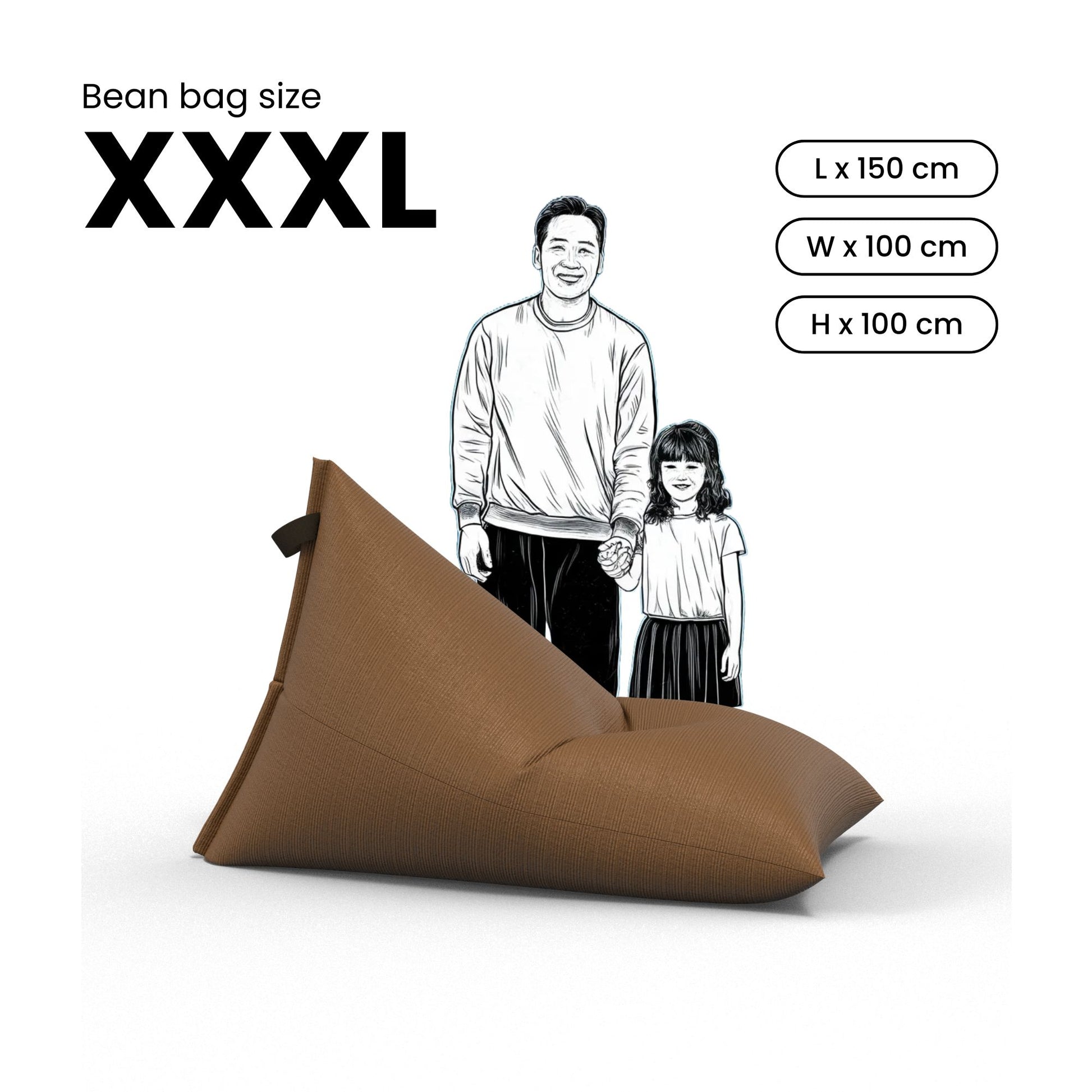 Made from 300gsm soft, durable corduroy fabric, this pyramid-shaped bean bag offers superior back support. The rich Camel Brown color and solid pattern make it a stylish addition to any room. A black handle on the back ensures easy transport. Perfect for indoor lounging, with velcro and zipper closures for convenient filling. Length: 160cm, Width: 110cm.