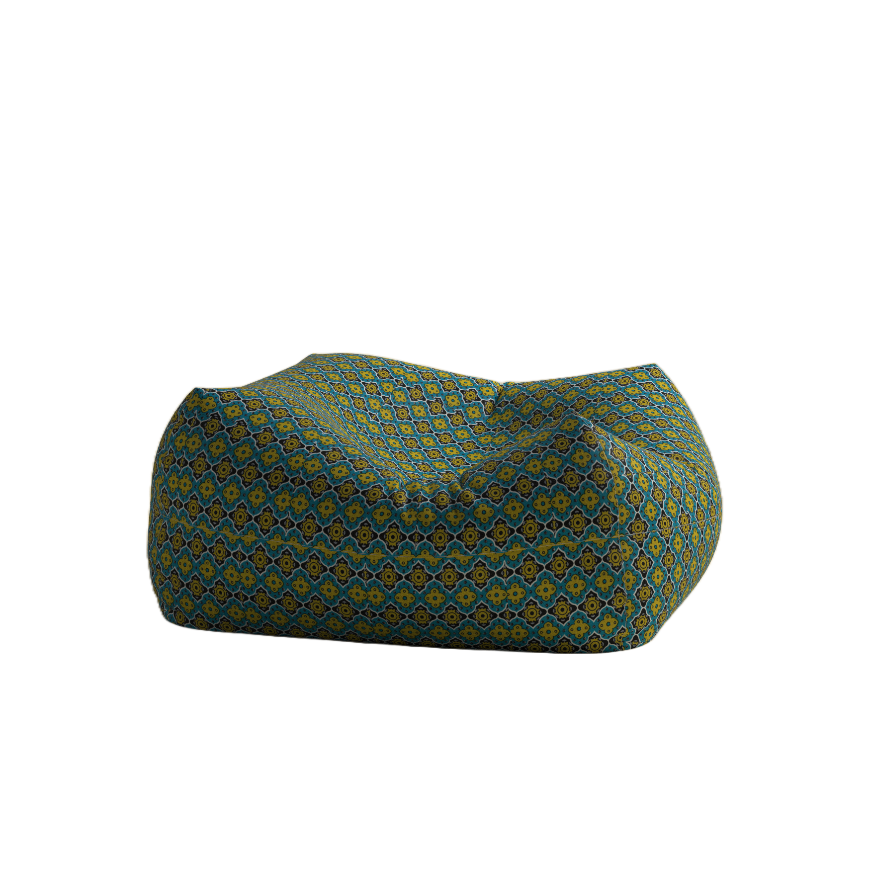 Introducing our Durable Green Geometric Floor Pouf, crafted from durable cotton with a charming geometric pattern. Perfect for indoor use, its cute square shape fits snugly into small spaces and corners. The full-width zipper ensures easy bean filling, while the strong velcro closure keeps fillers securely inside. Enjoy the comfort and versatility of this pouf as a stylish addition to your home decor.\n\nIn the box: Bean Bag x 1 (Fillers are not\nincluded)